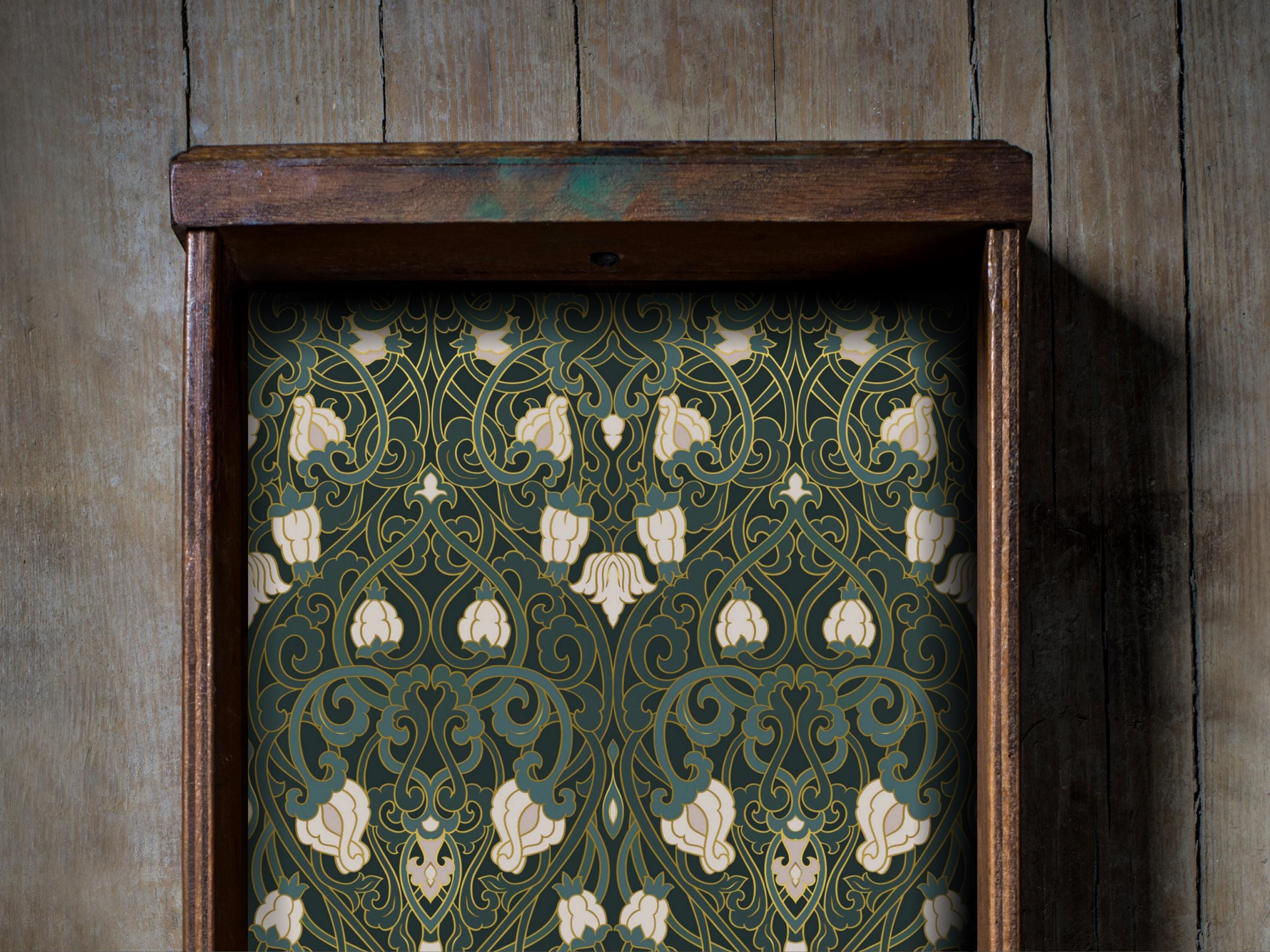 Refresh your space with our Dark Green Art Nouveau drawer liner — available in peel & stick or paper. Eco-friendly shelf liner. Breathable contact paper. Made to protect your drawers with style.