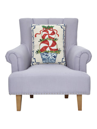 Handcrafted Red & White Peppermint Swirl Hooked Wool Pillow