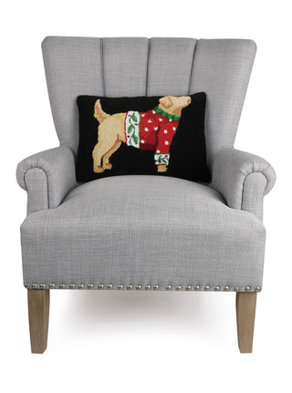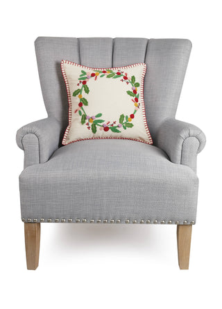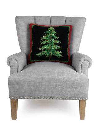 Handcrafted Red Snowy Christmas Tree Hooked Wool Pillow