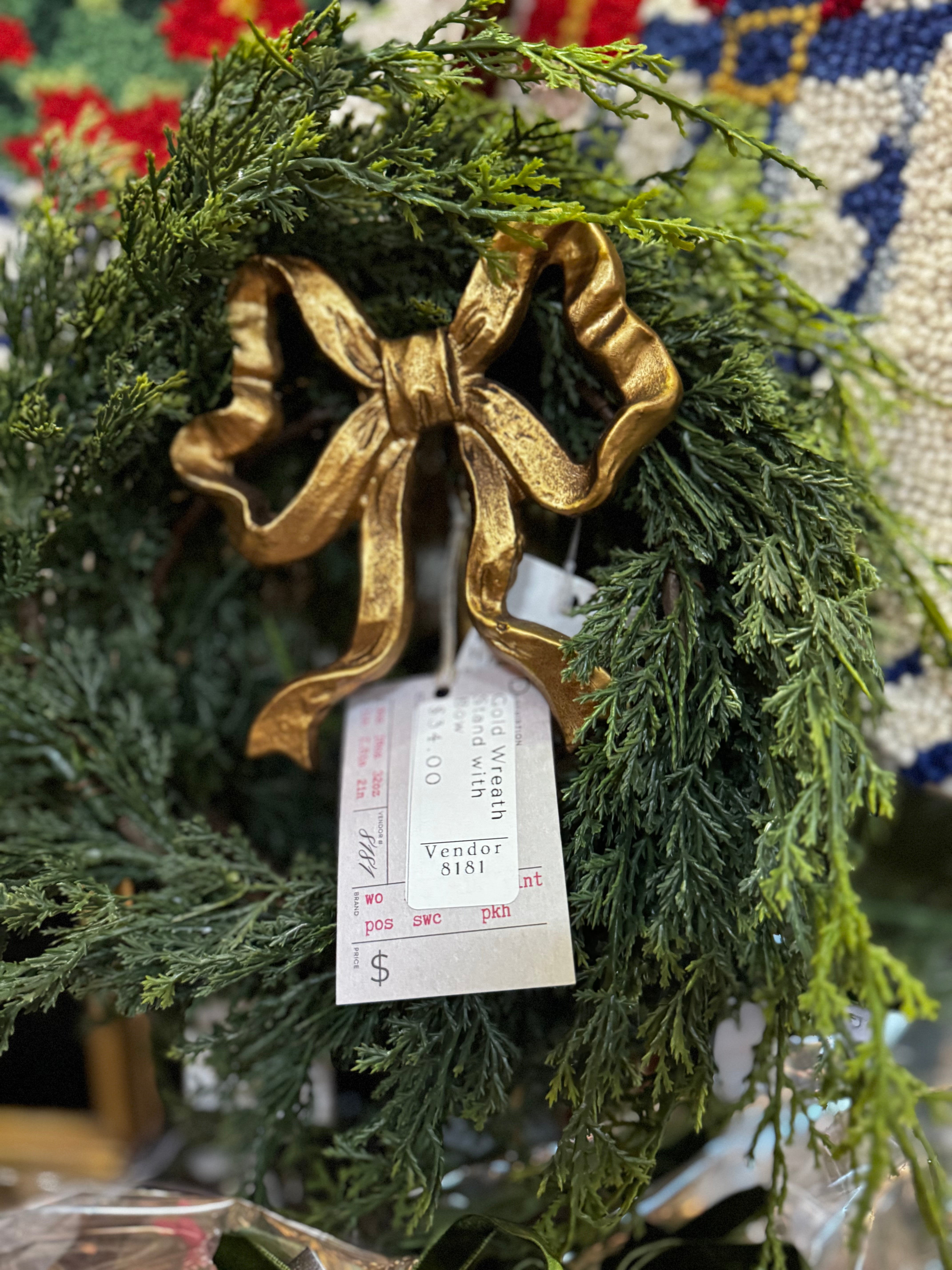 The 18.25" Gold Wreath Stand with Bow from Ragon House is a standout piece for your decor. With a depth of 6", this stand exhibits a balance of durability and elegance. Inspired by Mary Ragon’s love for antiques and vintage, this stand is designed with a fresh take on aesthetics. It's an ideal accessory for home accents, promising to enhance your living area. Celebrate the season with this beautiful piece that carries a legacy of over 25 years of excellence.