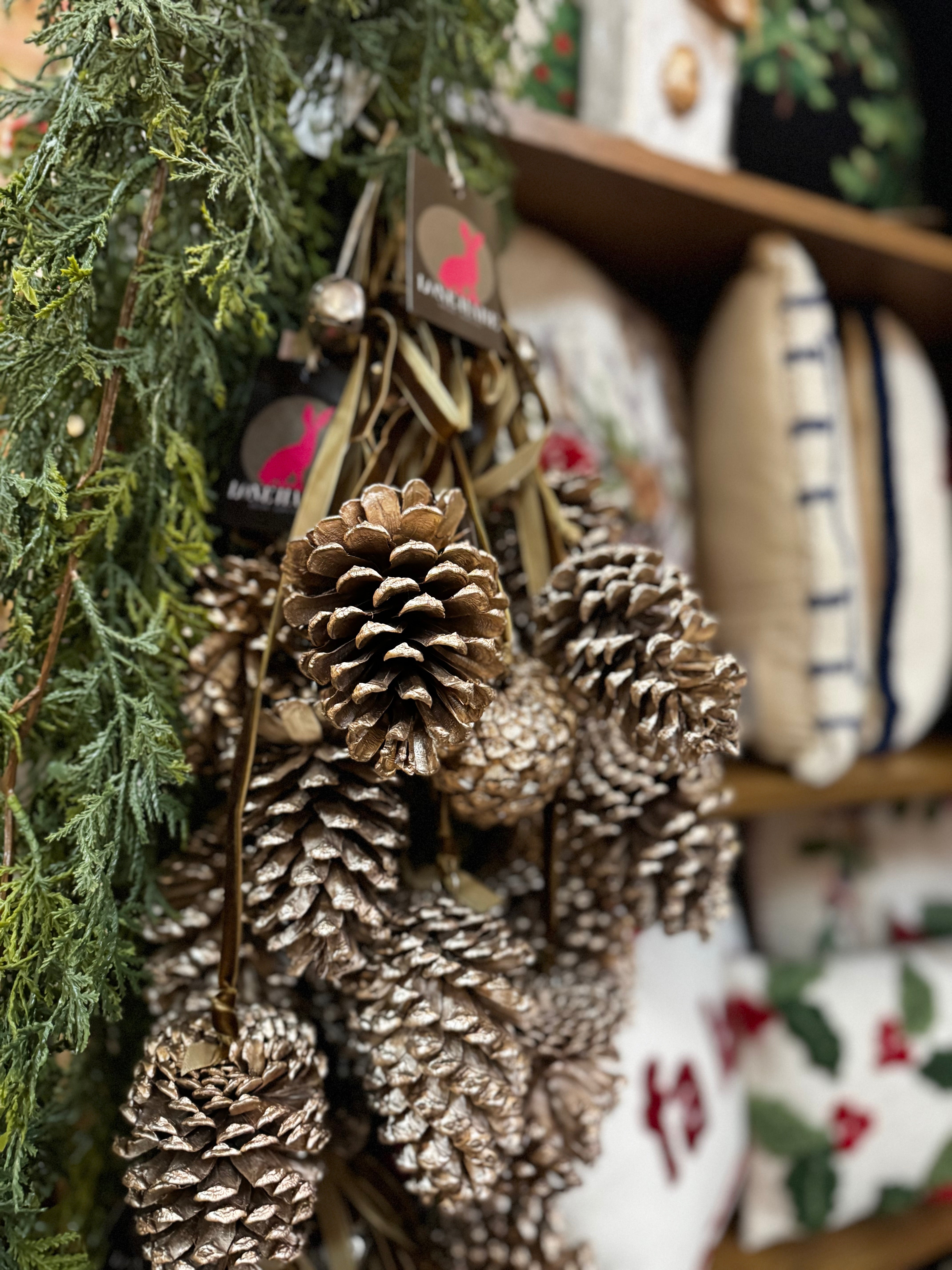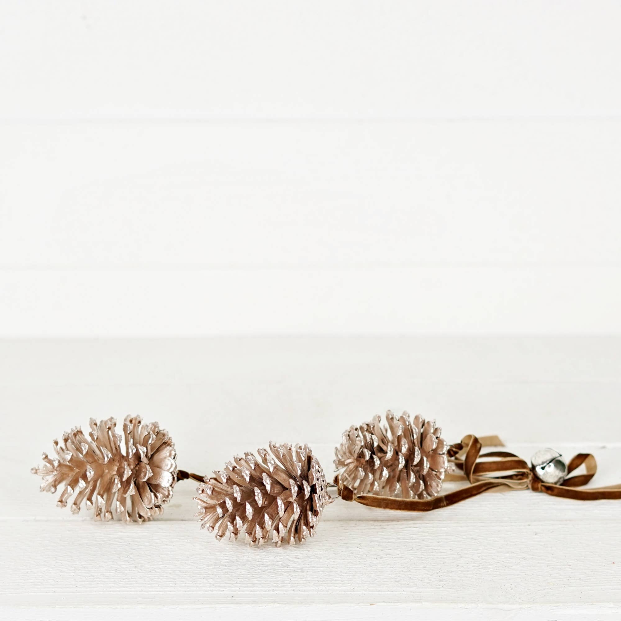 Champagne Glitter Pinecone Trio Cluster 19 inches long
