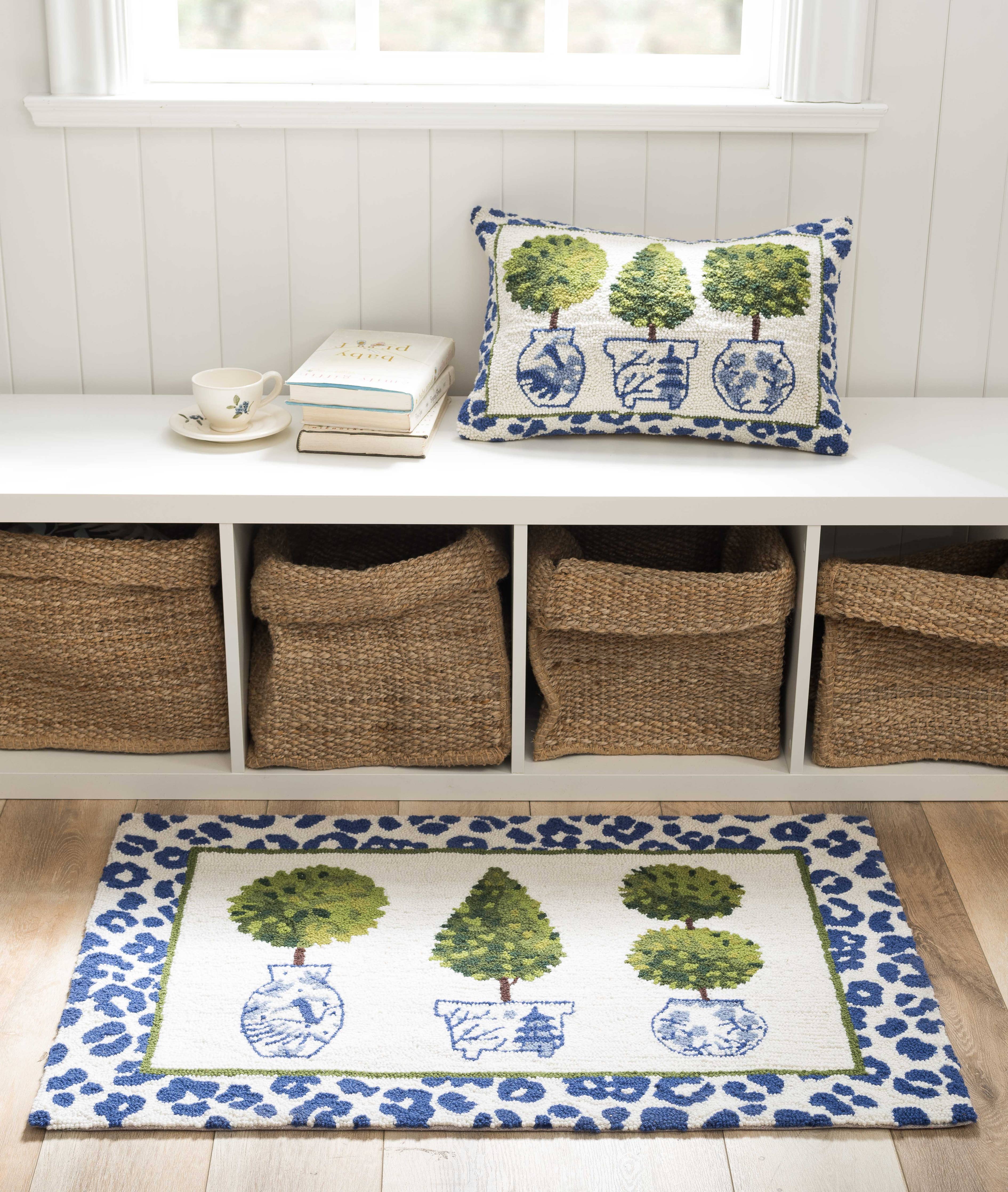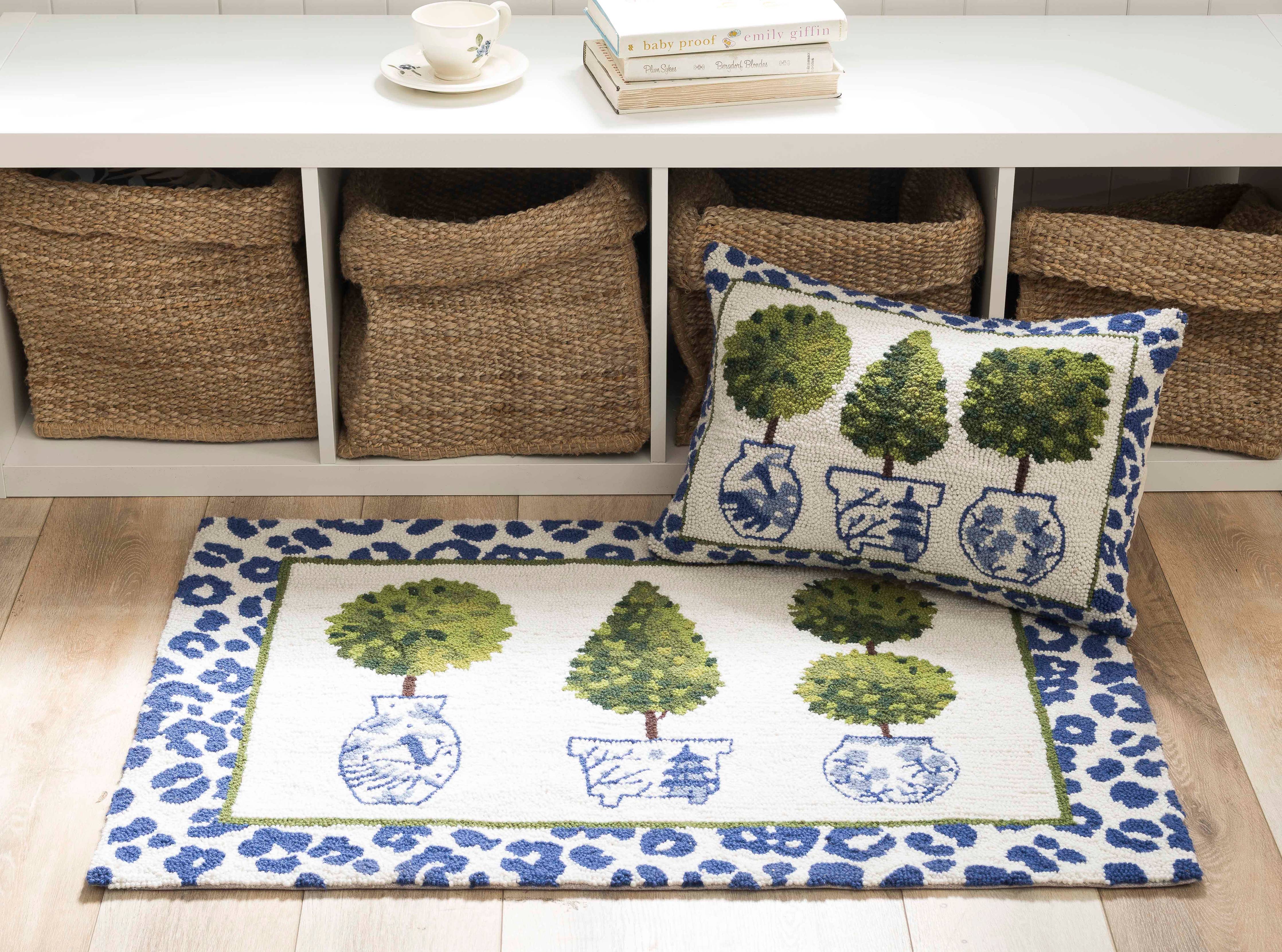 Elevate your space with this refined hooked accent pillow, featuring an exquisite leopard print topiary design inspired by chinoiserie aesthetics. Crafted from 100% wool with a luxurious velvet backing, this 14x20" throw pillow combines artisanal technique with contemporary style. The convenient zipper closure and included polyester insert make it both beautiful and practical for any room.