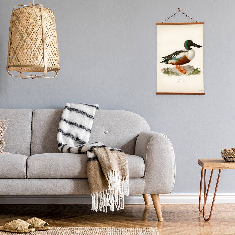This striking 16" x 20" canvas print showcases the Von Wright Brothers' celebrated duck artwork in museum-quality detail. Rendered on premium matte canvas using advanced inkjet technology, every nuance of the original composition emerges with exceptional clarity and depth. The substantial, heavyweight canvas delivers a luxurious tactile experience worthy of fine art collections. Display is effortless with the included magnetic wooden hanger, finished in warm walnut tones and accented with rustic rawhide cord—a refined solution that elevates any room's aesthetic while preserving the artwork's integrity.