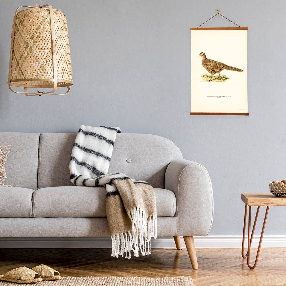 This striking 16" x 20" canvas print showcases the Von Wright Brothers' celebrated pheasant artwork with museum-grade precision. Rendered on premium matte canvas using advanced inkjet technology, every detail emerges with exceptional clarity and depth. The substantial, heavyweight canvas delivers a luxurious tactile quality that elevates any interior. Suspended from an elegant walnut magnetic hanger adorned with rustic rawhide cord, this piece combines refined artistry with thoughtful craftsmanship for a gallery-worthy presentation in your home.